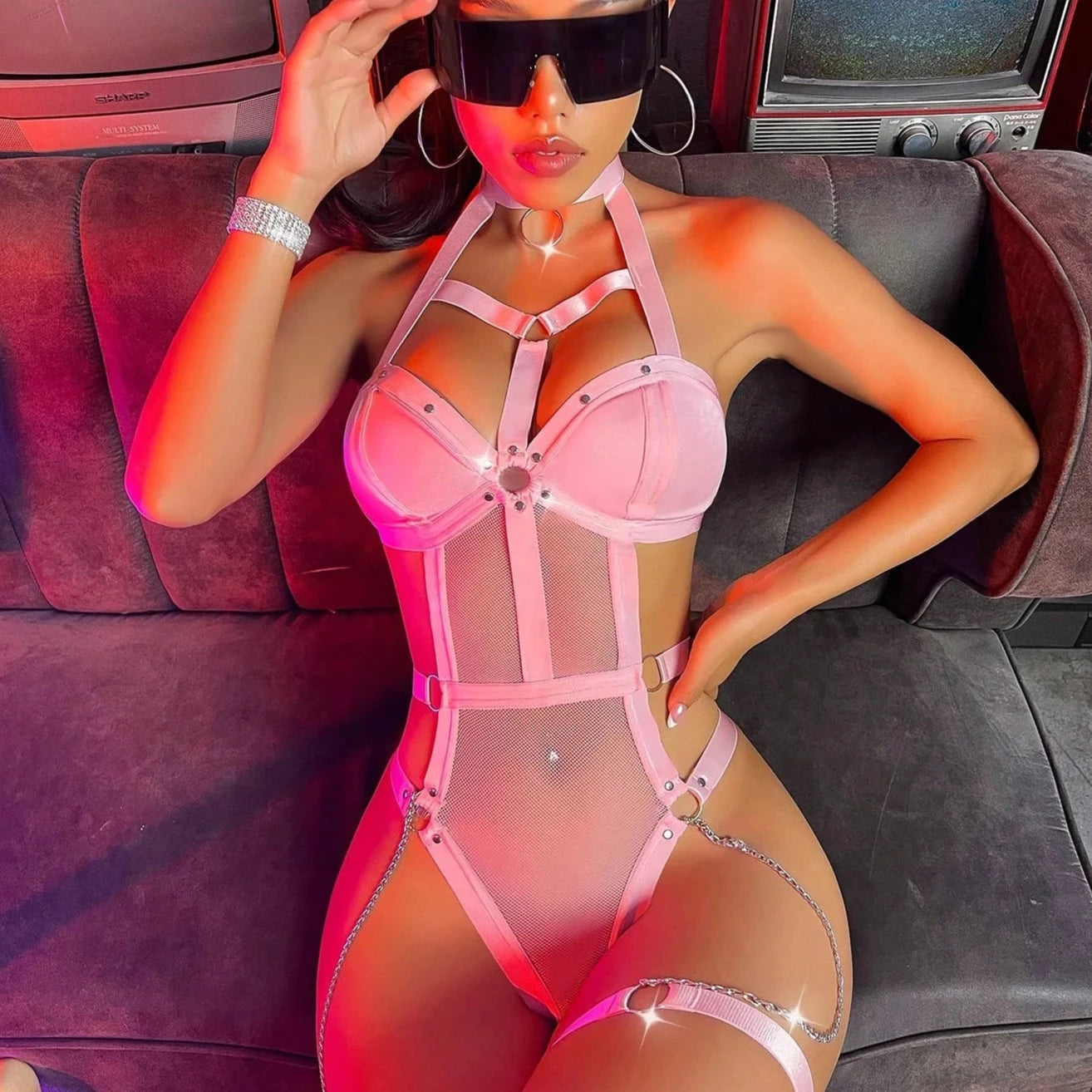 Turn heads at the festival with our sexy Festival Bodysuit. This one-piece night club outfit boasts a halter backless design, complemented by sensual lace details. Perfect for a night of dancing, this ensemble effortlessly combines sexy style with fitness aesthetics, ensuring you shine with confidence and allure under the festival lights.
